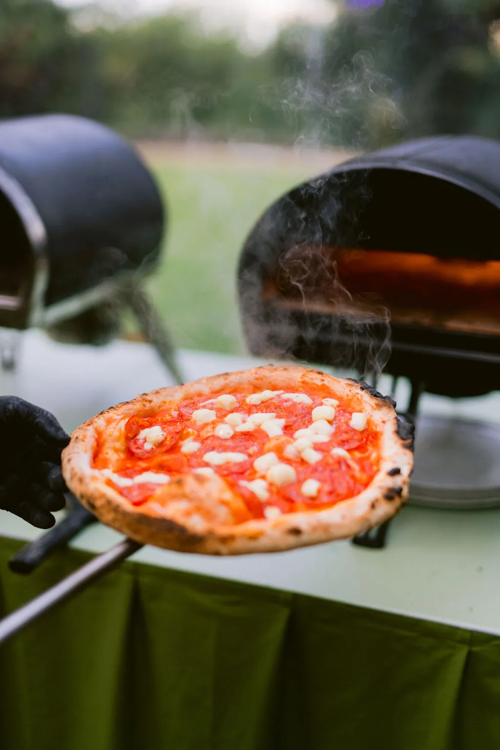 - a live pizza station with freshly baked pizzas