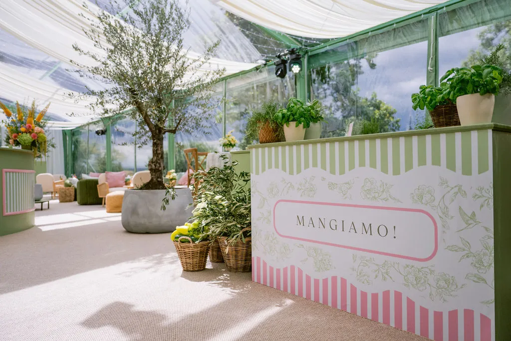 Cuisine was a central part of the guest experience. The tented lounge became a celebration of Italian flavors and shared dining: