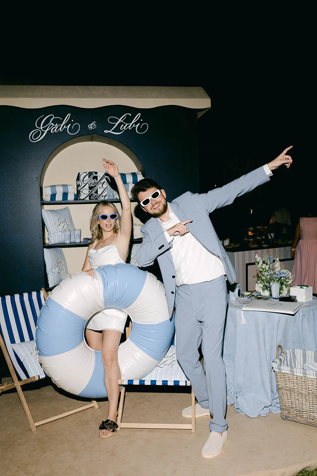 Místo klasického fotokoutku vznikla hravá open-sky lounge se stanem, designovým barem a kreativní cabannou s Instaxem. Hosté se tu bavili celý den – před obřadem, po obřadu i během večerní party. Žádné nucené pózy, jen přirozená radost a autentické momenty zachycené na papíře.
